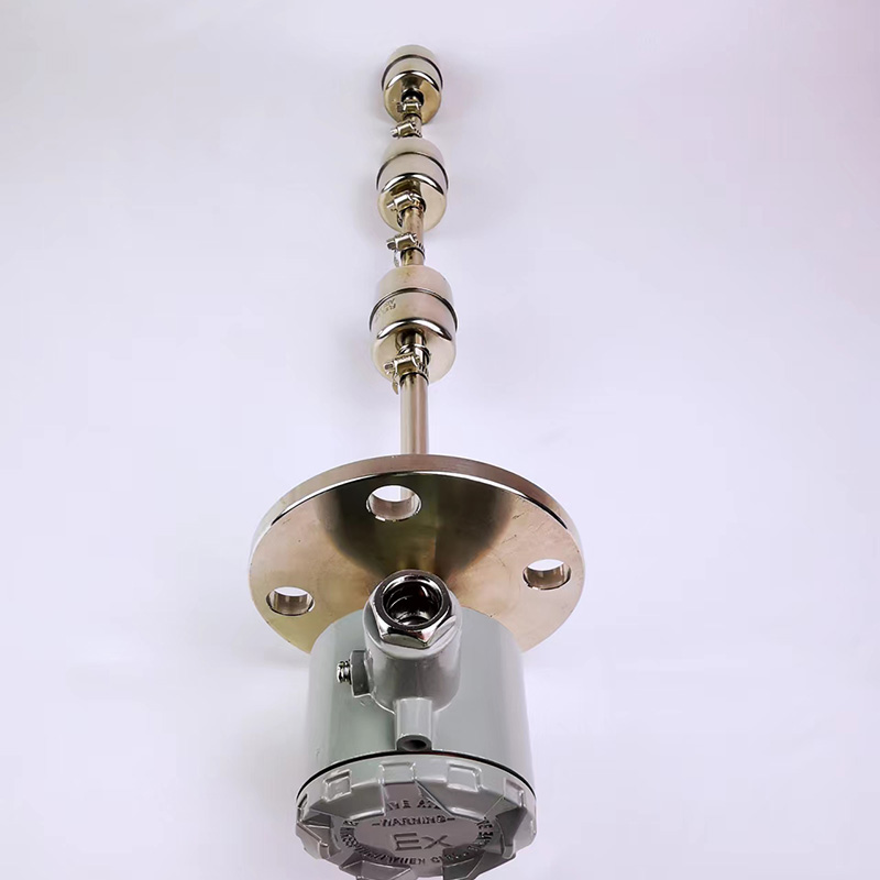 擴展閱讀<< 如何減小浮球液位計的測量盲區 浮球液位計盲區的成因是因為浮球以及鎖緊環的高度導致了浮球液位計測量盲區的產生。所以,我們要想使得浮球液位計的測量盲區減小,就要想辦法使浮球以及鎖緊環的高度減小,使得在一定高度的容器內,浮球液位計能檢測更大范圍的液位高度變化,也就是說它能檢測的范圍更靠近容器底部以及容器頂部,從而使得測量范圍更大、更精確。但是無論怎么減小,浮球液位計的結構決定了其測量盲區不可能完全消除。 浮球液位計的結構是一機械杠桿系統 浮球液位計的結構是一種機械杠桿系統, 是采用恒浮力來測量液位的,所以平衡錘在中間時,實際液位在中間。將浮球的移動位移通過連桿機構轉換為軸的轉動,再通過轉換裝置把液位高度變為電信號,轉換裝置是個圓形滑線變阻器,浮球軸的角轉動引起滑線變阻器阻值變化,經過變送器處理輸出與液位對應的電流信號通過顯示儀表顯示液體的實際高度,以達到液位檢測和控制目的。浮球液位計根據測量范圍、浮球連桿長度可分為普通型和寬量程型。 浮球液位計安裝注意事項 1.為防止浮球在運輸過程中高速滑動或撞擊密封管,導致測量帶脫落,儀器出廠前用夾子將浮球固定在密封管底部,磁鋼固定在密封管頂部。安裝使用前,用戶應拆下夾子,將浮球升至密封管頂部,然后輕輕向下移動浮球,指針應相應旋轉。2.安裝前應確認測量液體和液位計周圍不得有鐵磁雜質,介質比大于浮球,否則會影響液位計的正常運行。3.儀器應垂直安裝在浮球上下運動時不受阻礙的位置,以確保浮球在主管內自由上下運動。4.浮球液位計的安裝位置應遠離液體入口,否則浮球容易因注入液體而產生波動。5.對于量程超過3.5米的液位計,需要在導桿底部安裝支撐耳,以加強導桿,使其更加穩定;6.液位計量般根據用戶需要設置液位計量程的零點和滿程位置。請不要隨意重新設置,以免檢測異常。7.浮球液位計使用一段時間后,如果浮子難以浮起或移動不靈敏,一般是由于浮子的磁性導致浮子導桿孔被鐵屑或其他污垢污染,此時,可以清空介質,然后取出浮子,清除浮子上的鐵屑或其他污垢,然后重新安裝。 購買浮球液位計時需要遵循什么原則? 購買浮球液位計的原則是什么?為了購買合適的浮球液位計,我們需要遵循以下原則:1。滿足工作條件的要求。例如,介質的性質。工作溫度。工作壓力。是封閉容器還是開放容器。2.滿足工作要求。如可靠性、測量精度、測量范圍等。3.成本效益高,滿足經濟要求。
